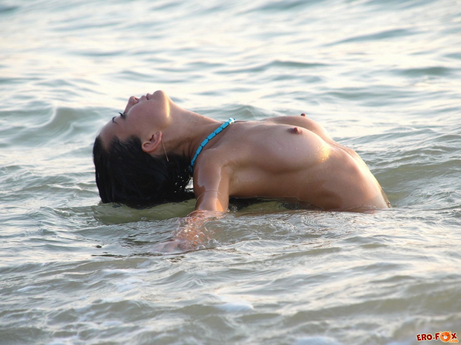 Длинноволосая девица со стройным сексуальным телом в бусах, забравшись в море, начинает эротично купаться и чередовать разные позиции. Выгибаясь, красотка ощущала наслаждение и засвечивала упругие сиськи с торчащими от прохладного воздуха сосочками, а выбравшись на берез улеглась на животик и выставила на показ сочную попочку и влажную бритую письку.